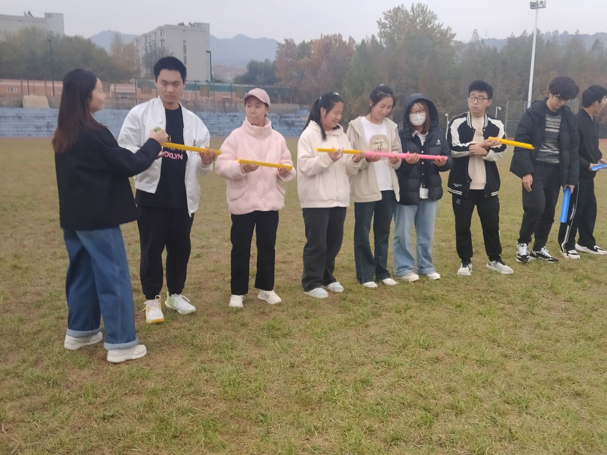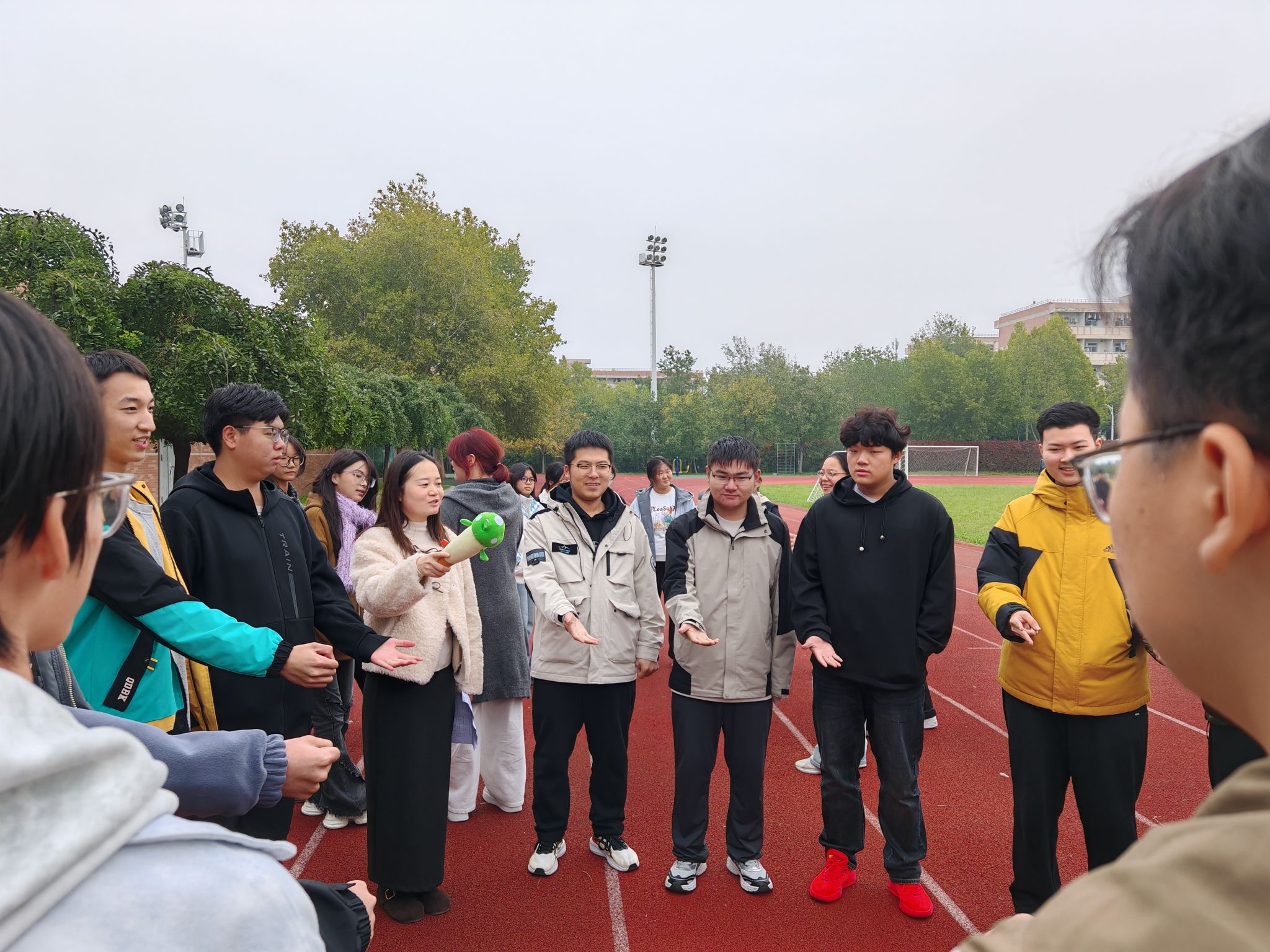 为深入推进“一站式”学生社区建设,提升新生的环境适应能力与集体归属感。10月中旬至11月上旬,理学院面向2025级全体本科新生,组织开展以“心相遇,共成长”为主题的心理团体辅导系列活动。活动结合学生空课时间,分班级、分批次在智慧教室与南环操场等地灵活进行,辅导员宋晓盼、张澜和新理驿站学生团队共同参与组织。