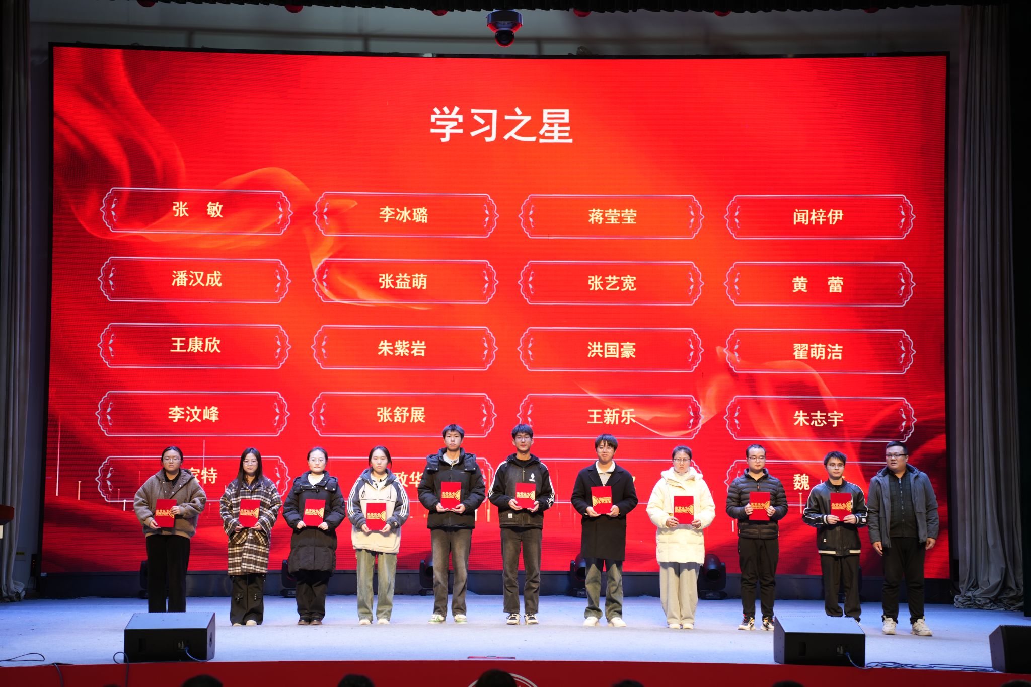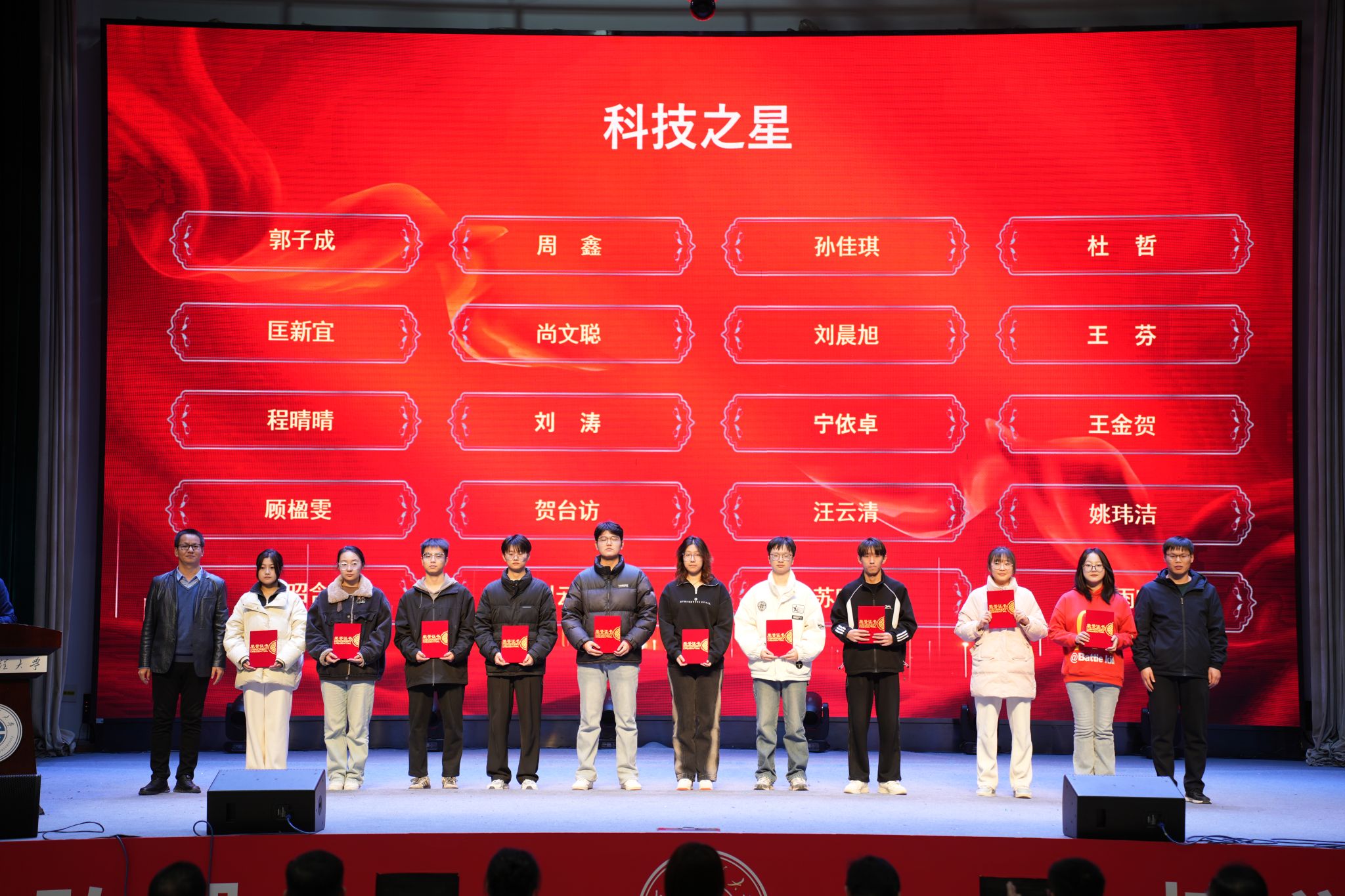 颁奖环节,与会嘉宾依次为“五星工程”先进个人、优秀宿舍、优秀学生与团员、优秀学生干部与团干部、先进班集体、学科竞赛获奖者及国家奖学金获得者等七类先进代表颁奖,全方位展现了理学院学子在德智体美劳全面发展中的卓越风采与昂扬风貌。国家奖学金获得者代表邢艺耀结合自身求学经历分享成长感悟。