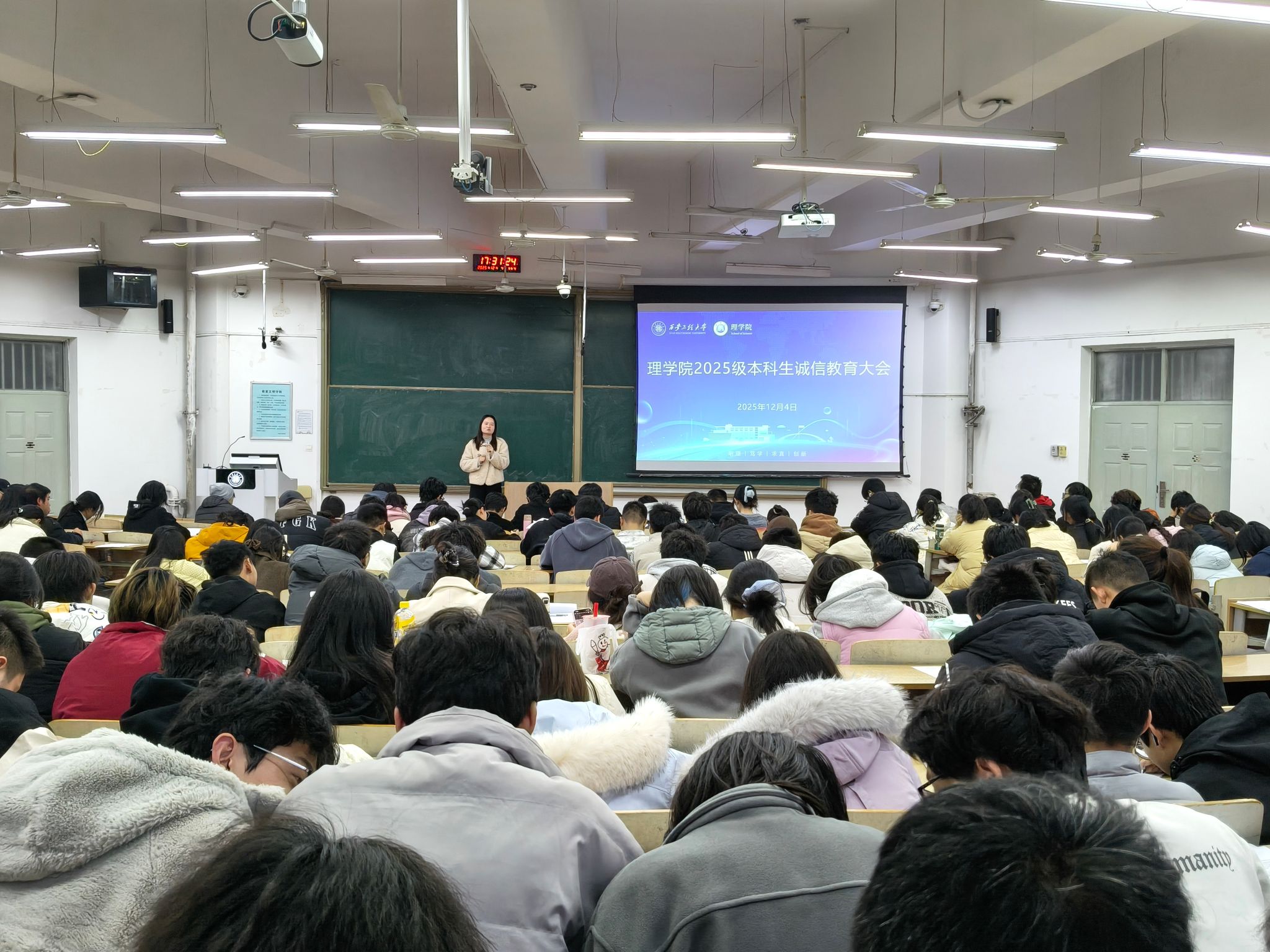 12月4日,理学院在B137教室召开2025级本科生期末考试诚信教育大会。会议由辅导员宋晓盼主持,2025级全体本科生参加。