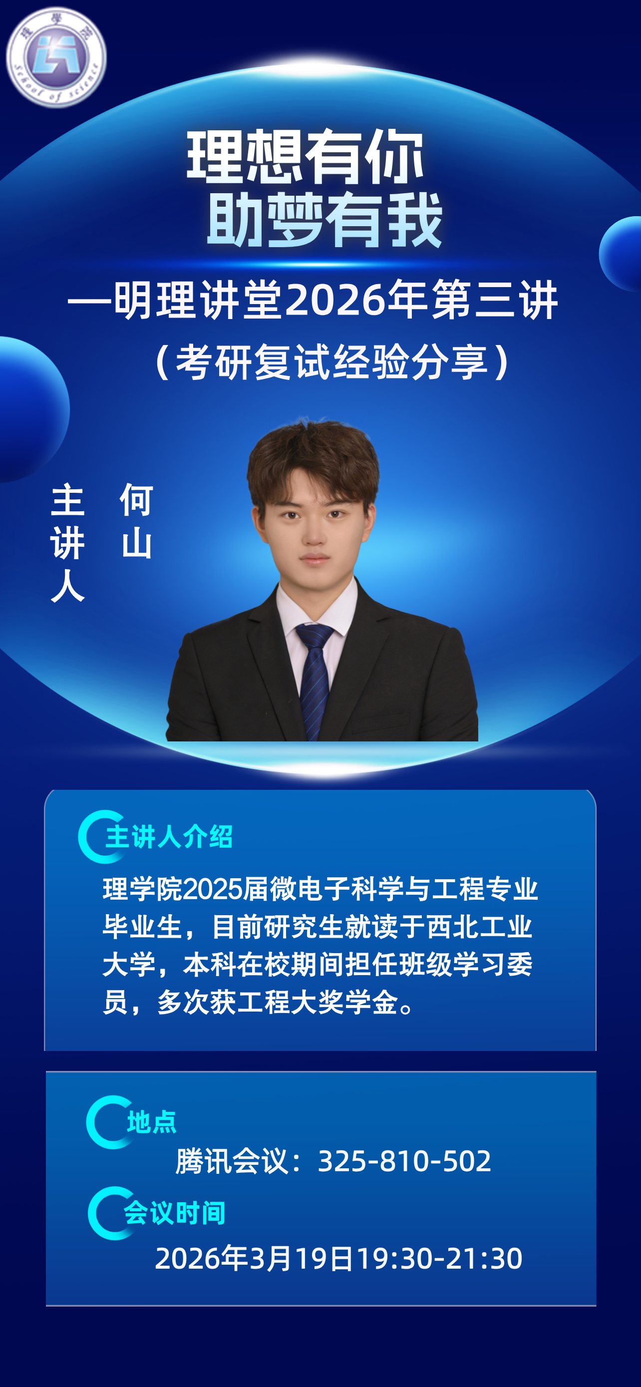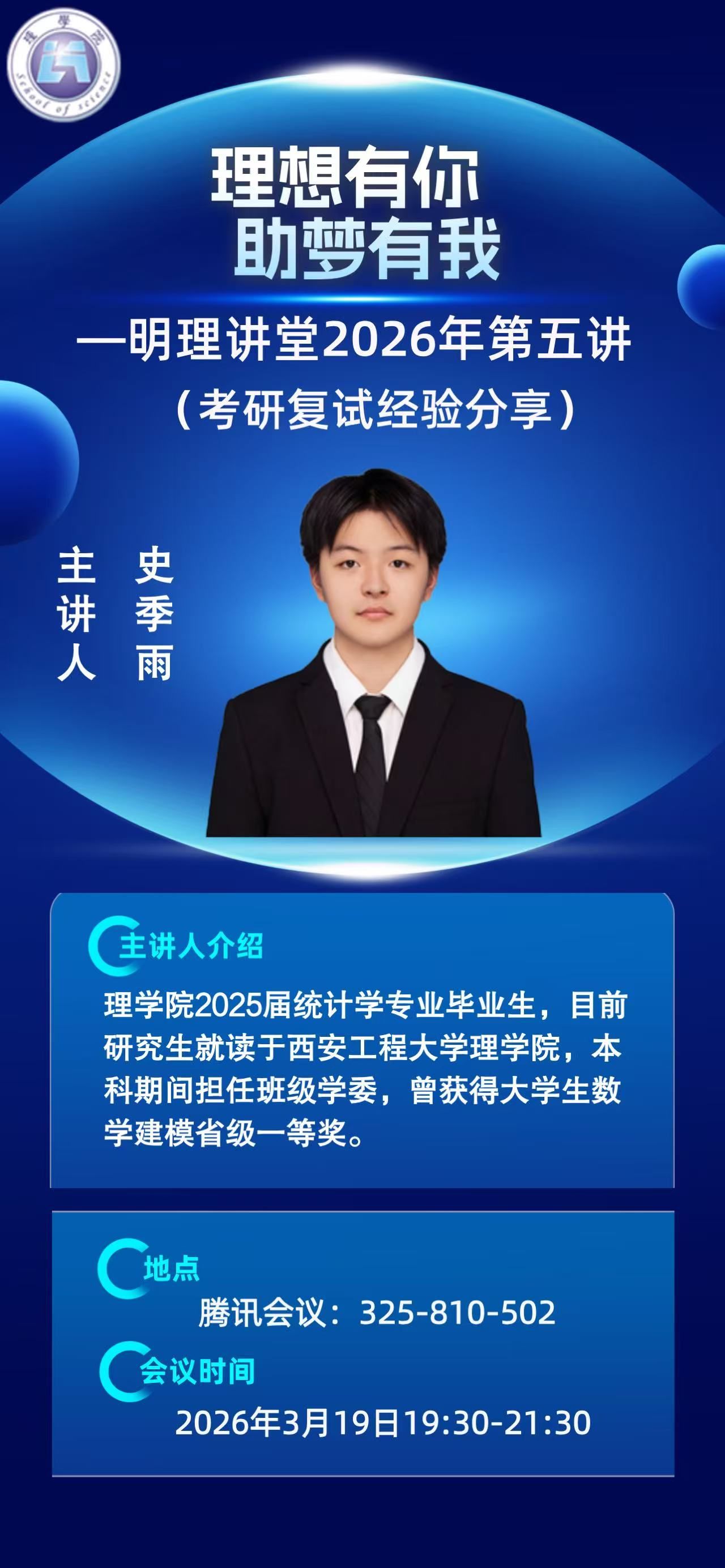 为持续将“我为学生办实事”举措落实落细,帮助2026届考研复试学生成功起航,理学院结合明理讲堂开展了多场考研复试经验分享活动,全体考研复试学生线上参会。