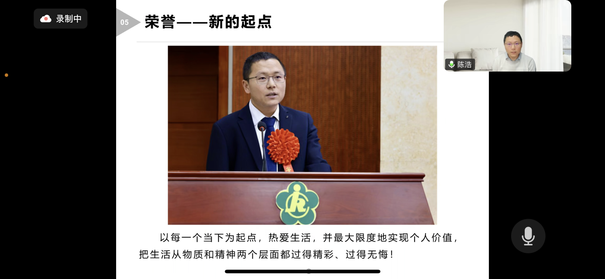 报告中,陈浩以“有梦,才有坚定的步伐”为主题,从成长经历、经验得失、崭新起点等三个维度,讲述了自己从小学到博士毕业一路走来的奋斗历程,回顾了在物理学术研究中克服困难、坚持探索的实践经历。他勉励同学们,梦想是前行的方向,信念是脚步的力量,唯有心怀目标、脚踏实地,方能在成长路上行稳致远。最后,他结合自身在羽毛球、乒乓球、足球、游泳等运动中的兴趣爱好,以“坚持逐梦、开阔眼界、不懈努力、热爱生活、阳光心态”五个关键词寄语在场学子,希望大家珍惜大学时光,在追求学业进步的同时拓展视野、培养志趣,实现全面发展。