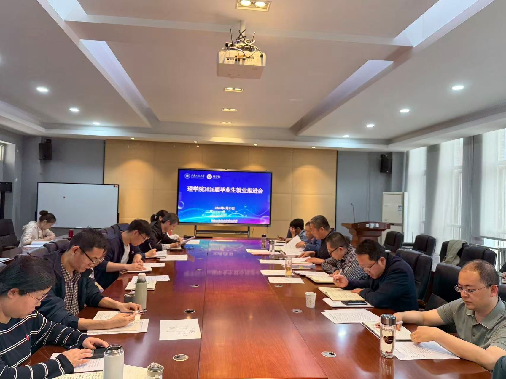 4月13日,理学院召开2026届毕业生4月份就业工作推进会。学院领导班子成员、各系部主任、各党支部书记及全体辅导员参加会议。会议由院党委副书记刘玉森主持。