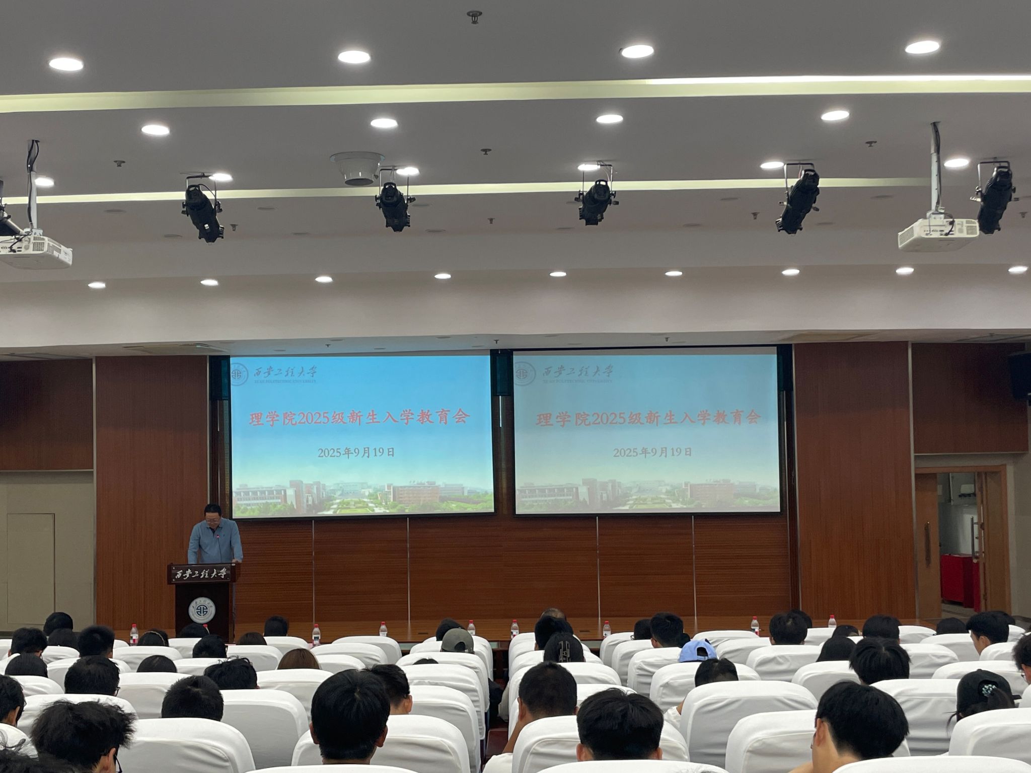 9月19日下午,理学院在临潼校区图书馆二楼报告厅召开2025级本科生入学教育会。院党委副书记文毅、副院长张国青以及各专业负责人、教务员、辅导员、教师代表、全体新生300余人参加会议。会议由副院长冯进钤主持。