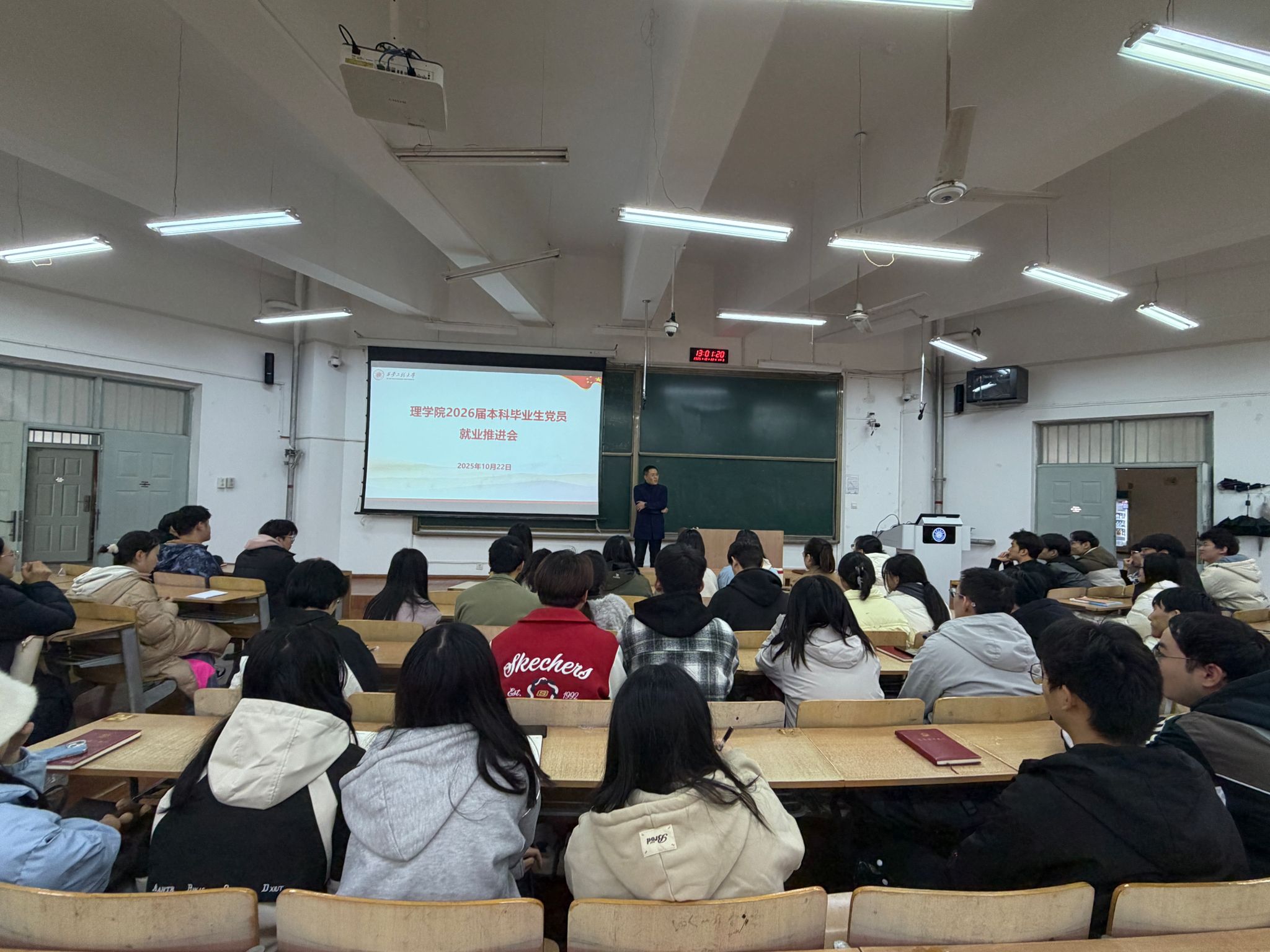 10月22日,理学院召开2026届本科毕业生党员就业推进会,旨在进一步凝聚毕业生党员力量,以点带面推动全院本科毕业生就业工作提质增效。院党委副书记文毅、毕业生辅导员高丽君和全体毕业生党员参加。