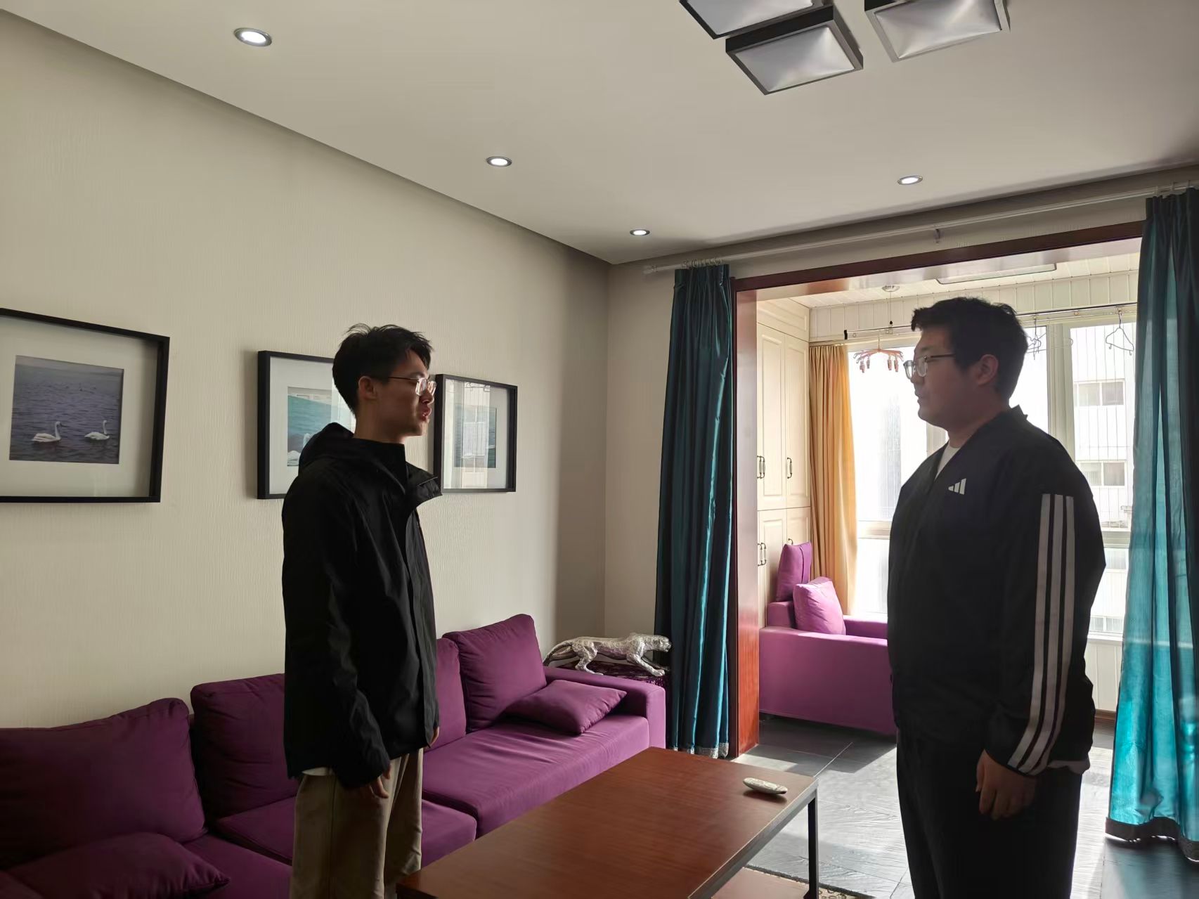 走访过程中,辅导员老师与同学们进行亲切交流,细致了解学生近期的学习进展、生活状况与实际困难,并围绕安全事项做重点提醒,包括注意用电规范、加强财物防护、遵守交通法规等,引导学生进一步增强自我保护意识。此外,辅导员也鼓励同学们积极应对学期中段的学习任务,合理规划时间,保持健康作息,为接下来的学习生活做好充分准备。