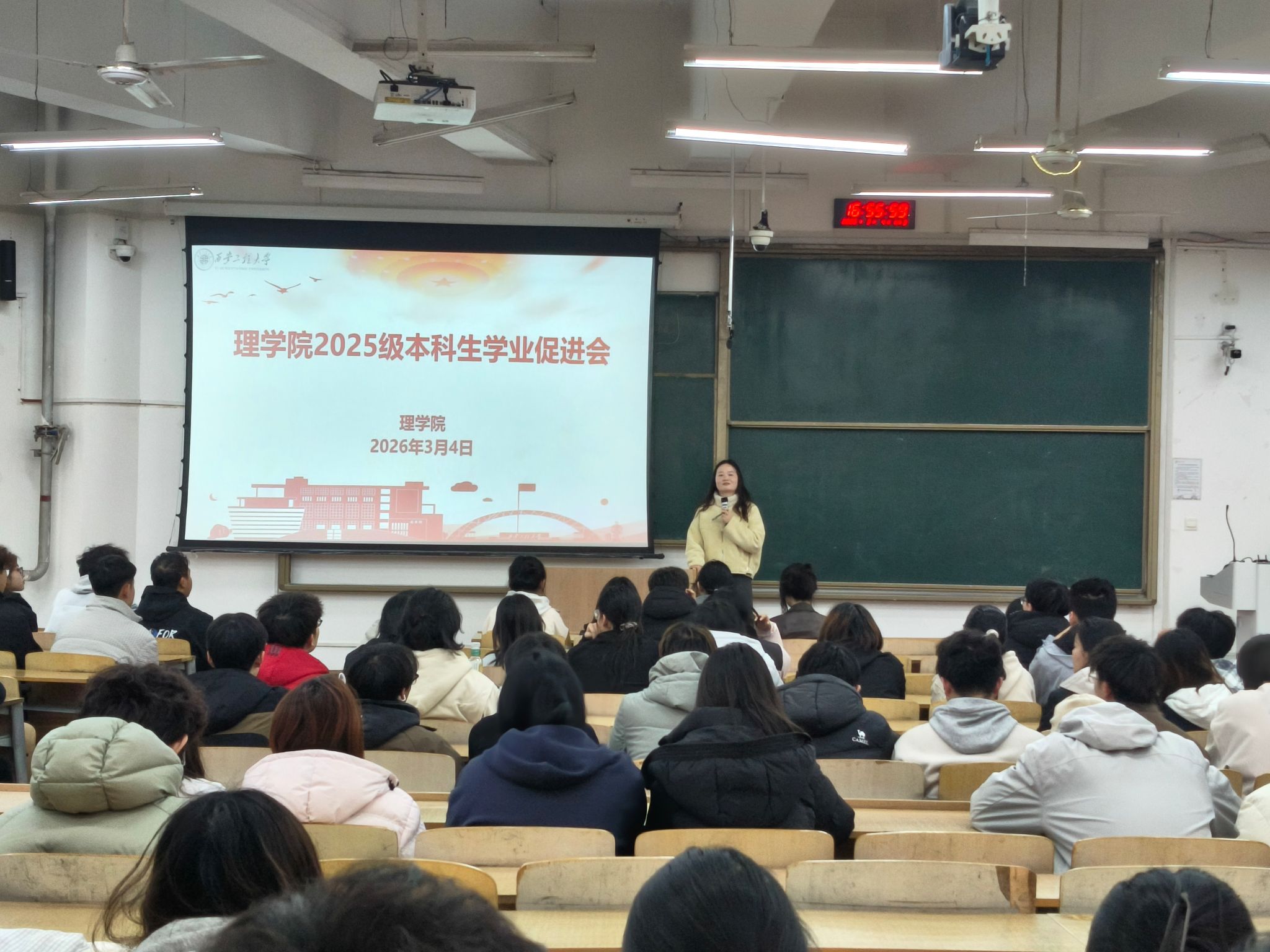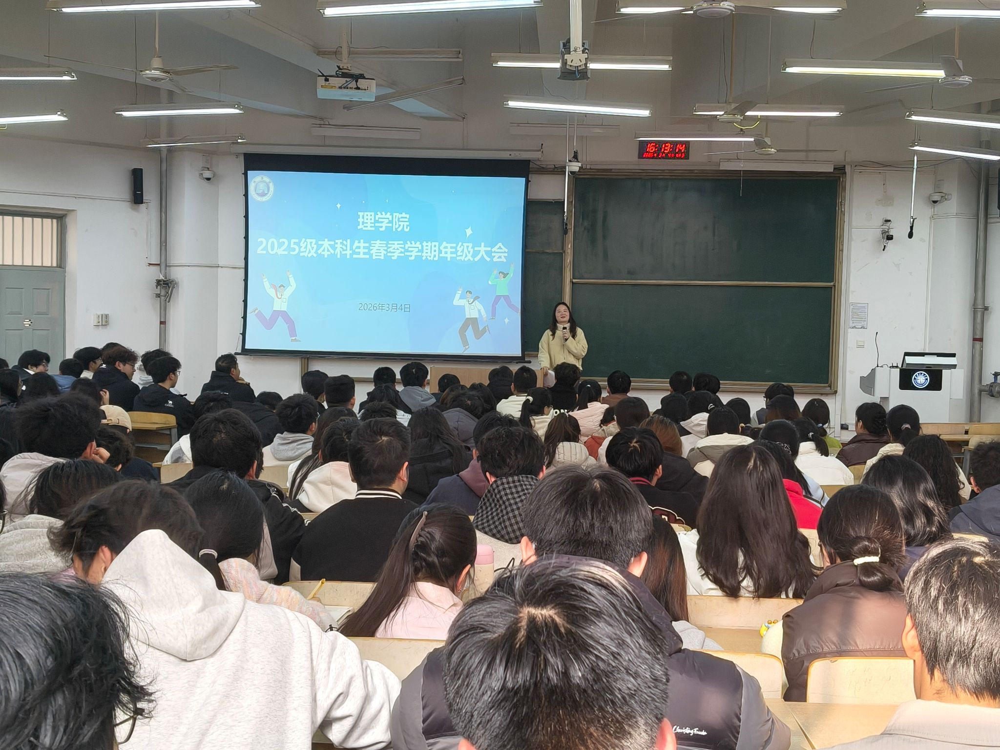 3月4日,理学院2025级辅导员宋晓盼主持召开新学期年级大会,全体2025级学生参加。