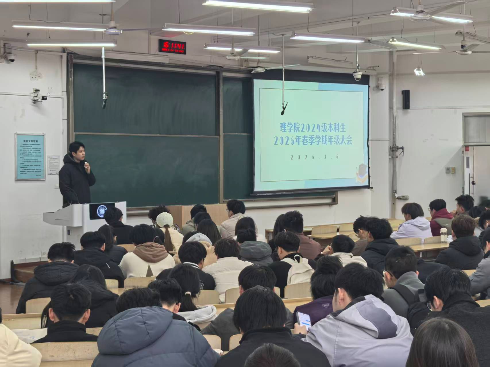 为帮助2024级本科生明确新学期发展方向,科学规划未来,进一步强化安全意识,3月6日下午2024级辅导员展玉强主持召开2026年春季学期初2024级本科生年级大会。