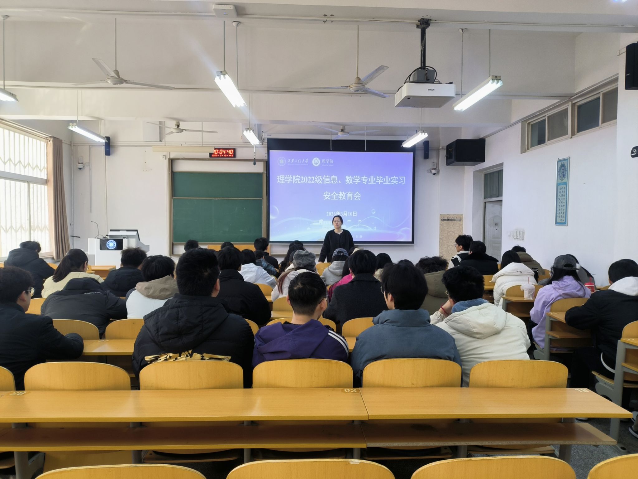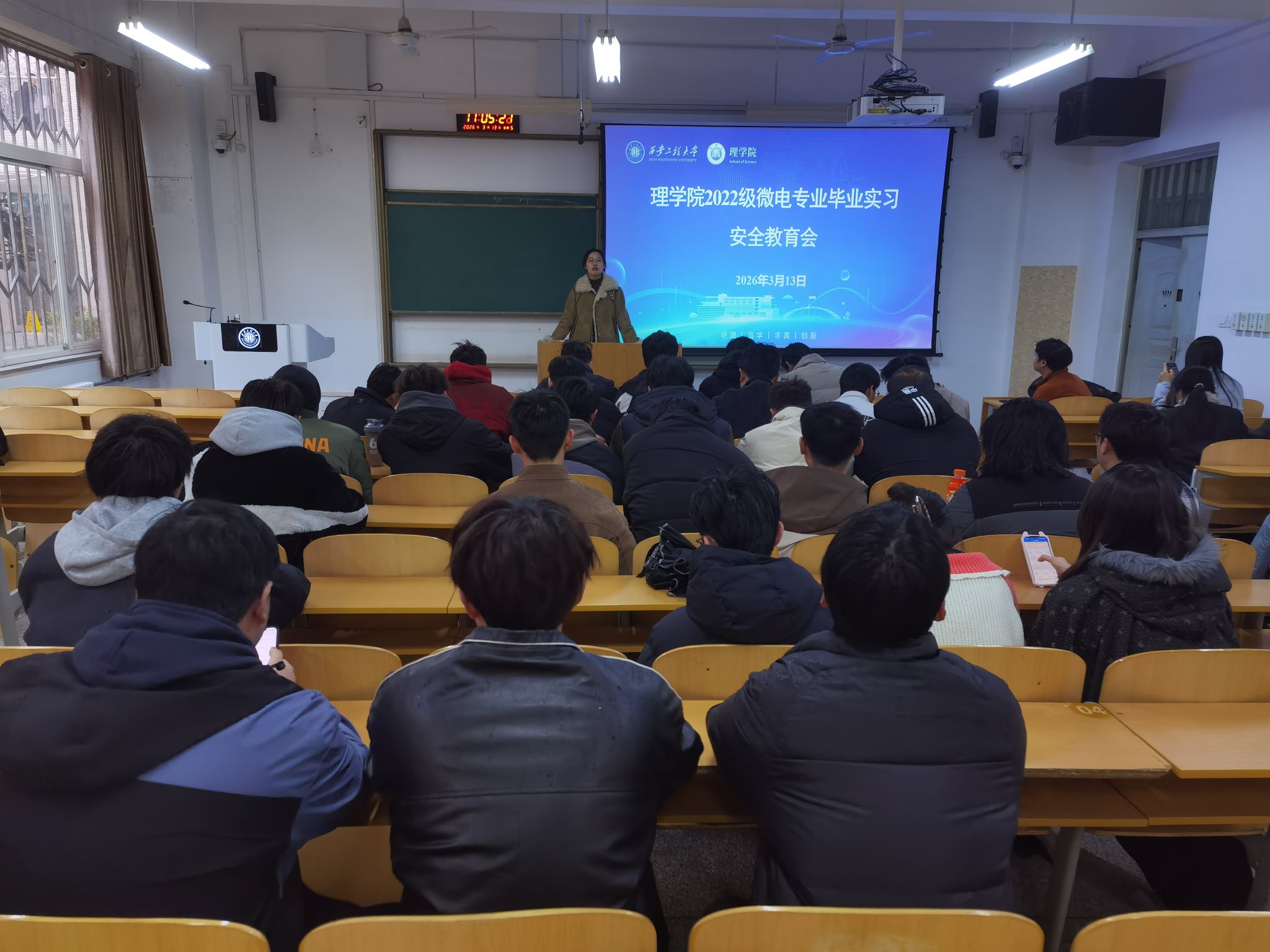 近日,理学院分专业召开2022级信息、数学、微电专业毕业实习安全教育会,毕业班辅导员高丽君及相关专业学生参会。