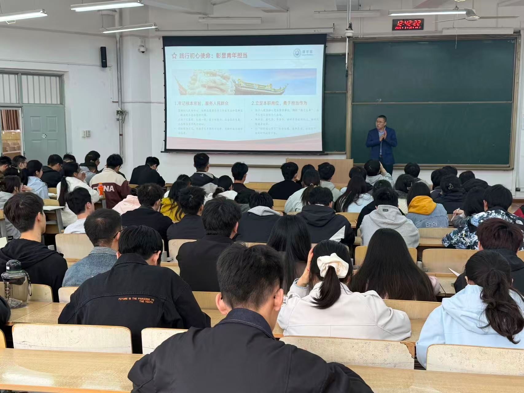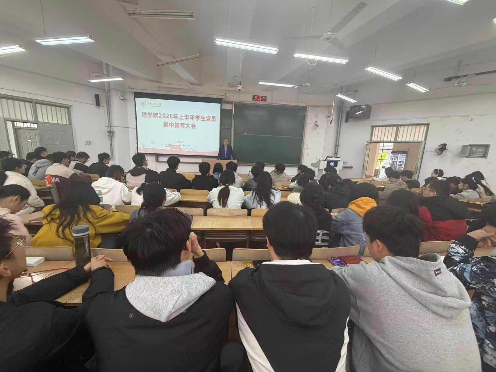 3月30日,理学院在临潼校区B133教室举行2026年上半年学生党员集中教育大会。院党委副书记文毅主讲,兼职组织员高丽君及全体学生党员参加学习。