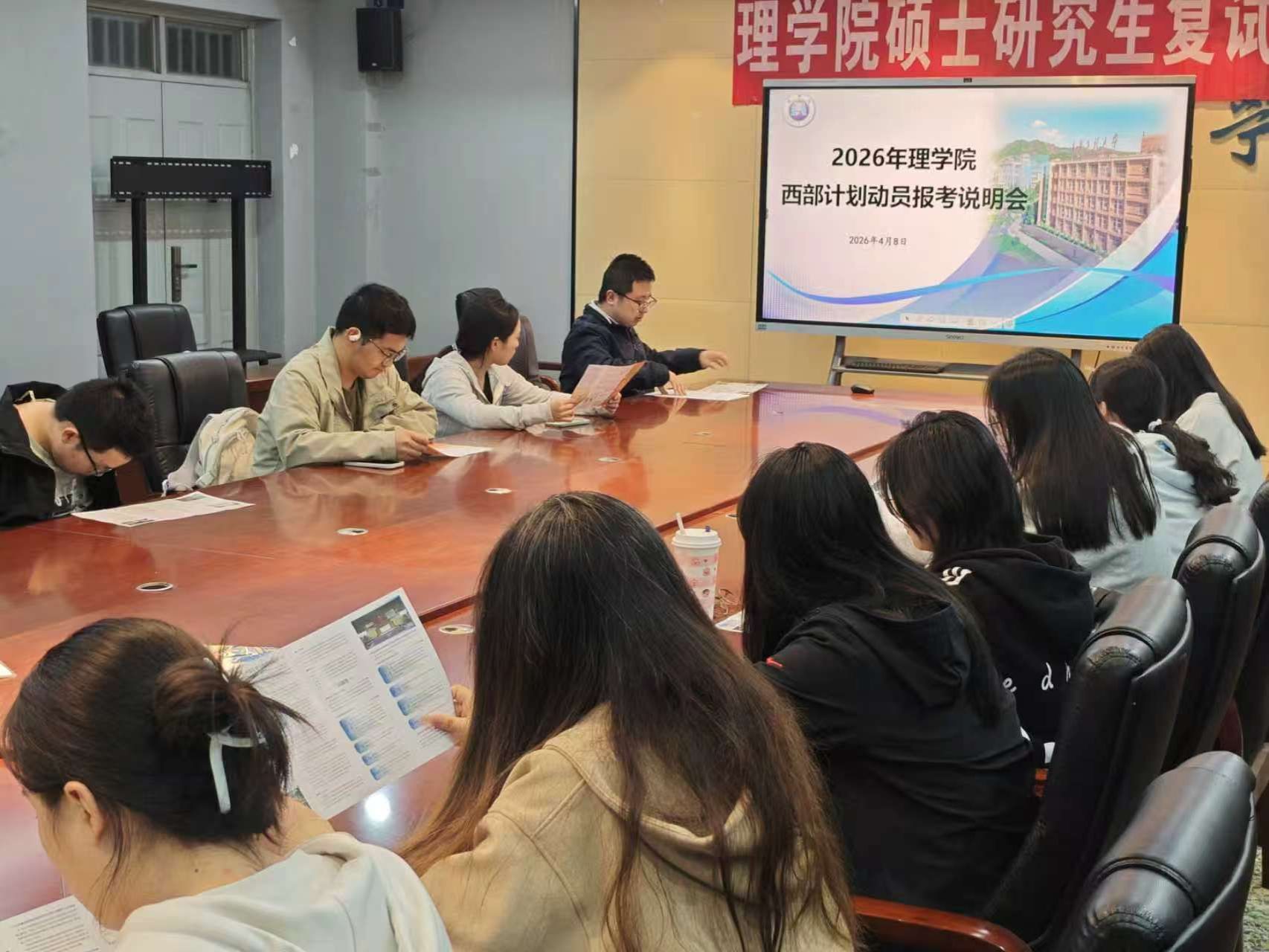 为进一步帮助同学们了解“西部计划”报考步骤和相关政策,鼓励毕业生到祖国需要的地方建功立业。4月8日晚,理学院在会议室举办了西部计划动员报考说明会,院团委书记田宇飞及有意向参加的毕业生参加了本次会议。会上,田宇飞结合学校文件精神围绕西部计划的报考条件、选拔步骤、具体政策等方面做了详细介绍,希望同学们积极报名、扎根基层、报效祖国。学院2025届毕业生、参加西部计划(新疆)的徐艳红校友通过线上方式,结合自...