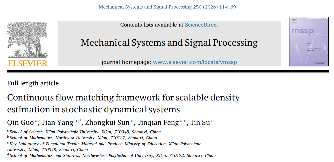 近日,我校理学院数据驱动的科学工程建模与仿真科研团队在一区TOP期刊《Mechanical Systems and Signal Processing》发表题为《Continuous flow matching framework for scalable density estimation in stochastic dynamical systems》的研究论文,该研究由西安工程大学联合西北大学、西北工业大学共同合作完成,我校理学院郭琴博士为论文第一作者。随机动力系统广泛存在于生物医学、电子电路、航空航天等领域,而概率密度函数...
