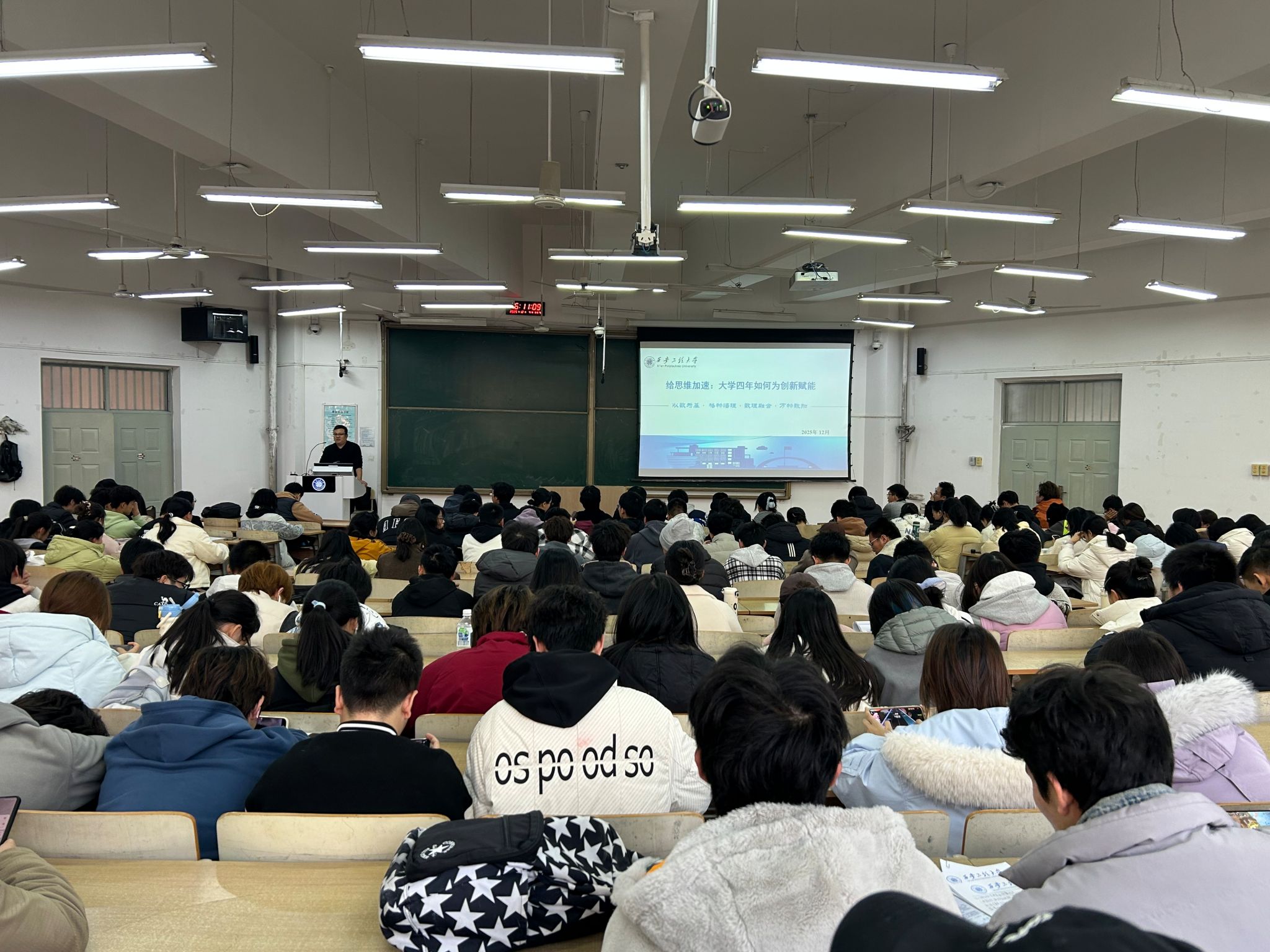 12月4日,理学院在B137教室举办新生入学教育专题讲座。学院物理实验中心主任卢定泽教授以“给思维加速:大学四年如何为创新赋能”为题做了专题讲授,2025级辅导员宋晓盼主持,2025级全体本科生参加。讲座中,卢定泽教授结合自身指导科创比赛经验,围绕大学期间创新思维的培养与创新创业竞赛参与展开,提醒同学们大学是思维转型的关键期,同学们要做好“解题”转向“破题”的准备和积累,从知识接受者成长为价值创造者。他强调了...