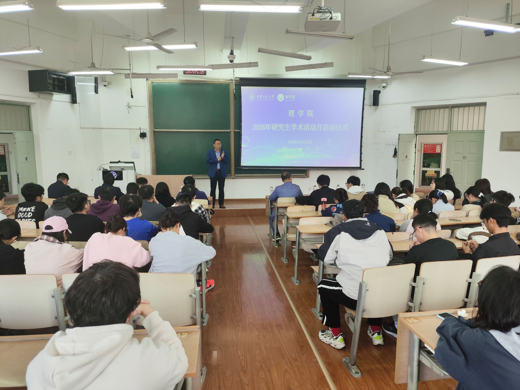 4月9日,理学院召开2026年研究生学术活动月启动仪式,学院党委副书记文毅,副院长冯进钤、张国青,教师及辅导员代表,学院研究生参加了启动仪式,仪式由冯进钤主持。首先,文毅进行致辞,他指出今年是“十五五”规划开局之年,也是学院乘势而上、加快发展的攻坚之年。学院举办研究生学术活动月,旨在以学术讲座、学术交流等活动为载体,不断激发研究生的创新活力,营造学院浓厚的科研学术氛围,为持续提升研究生培养质量提供有...